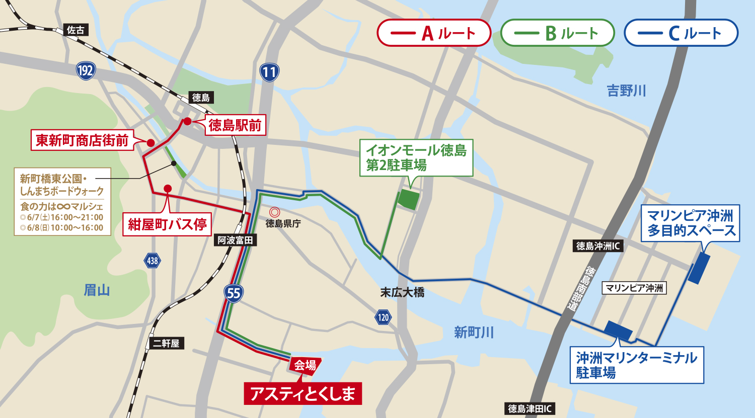アスティとくしま(会場)に一般来場駐車場はございません。